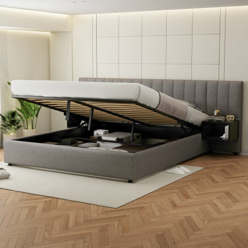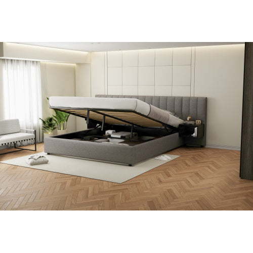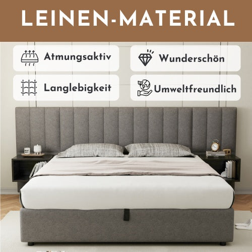 Polsterbett 180x200 cm mit hydraulischem Bettkasten & 2 Nachttischen