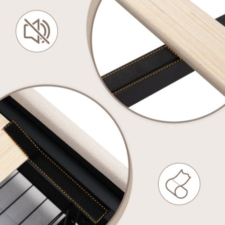 Gefertigt aus stabilem Eisenrahmen mit zusätzlicher Mittelstütze, bietet das Bett eine Belastbarkeit von bis zu 135 kg. Das mit Leinenstoff bezogene Kopfteil ist mit dekorativen Zierknöpfen versehen – für einen modernen Look mit klassischer Note.