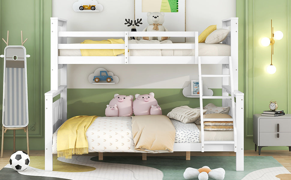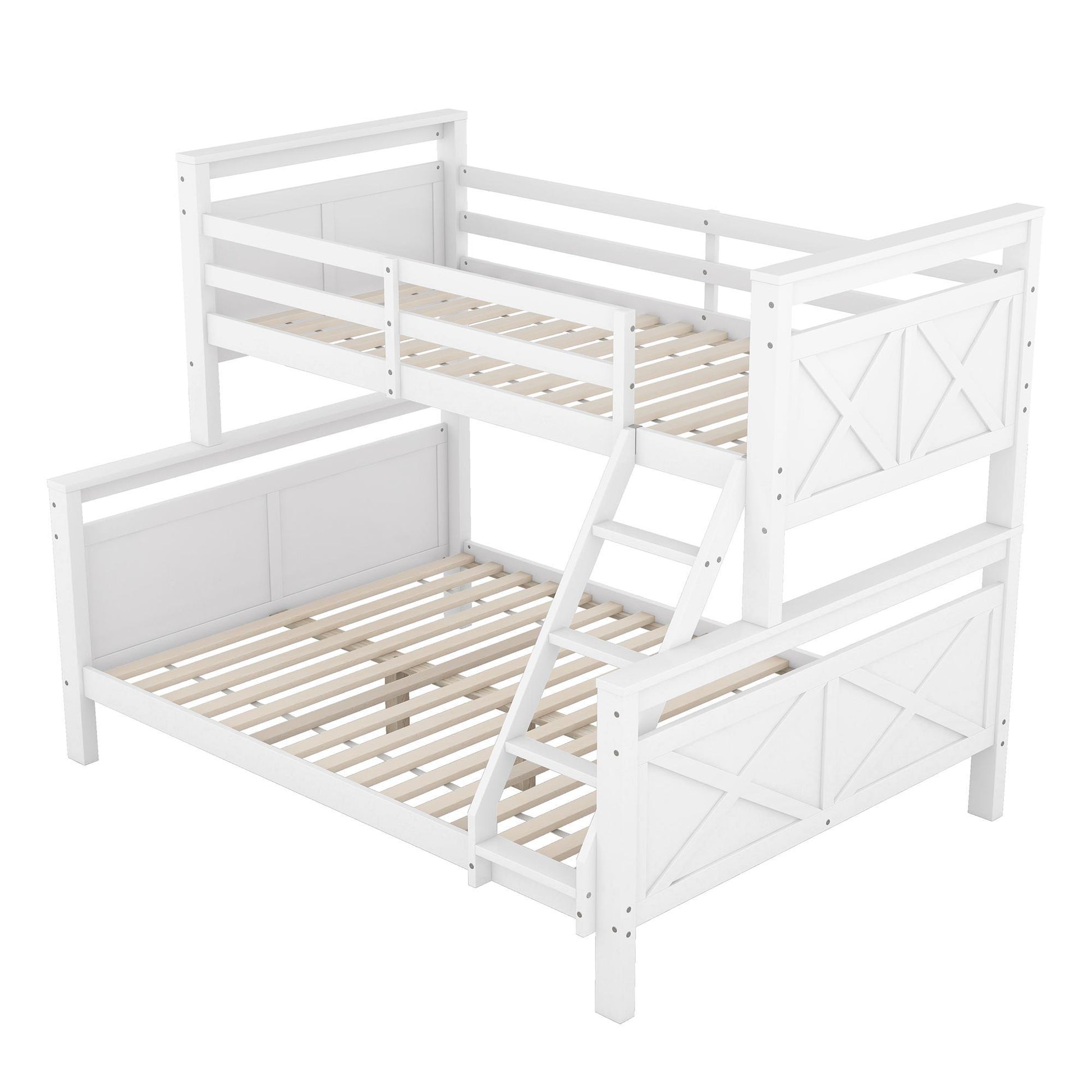 Etagenbett aus Massivholz mit Sicherheitsgeländer & Leiter – Umbau zu 2 Einzelbetten möglich | 90x200 & 140x200 cm